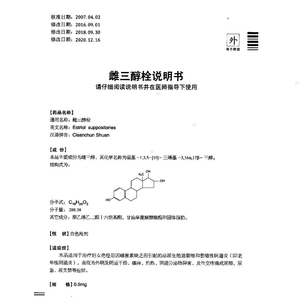 通用名称:雌三醇栓