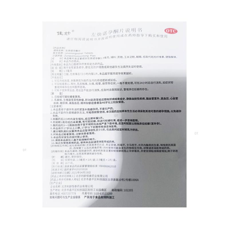 用于女性紧急避孕,即在无防护措施或其他避孕方法偶然失误时使用。