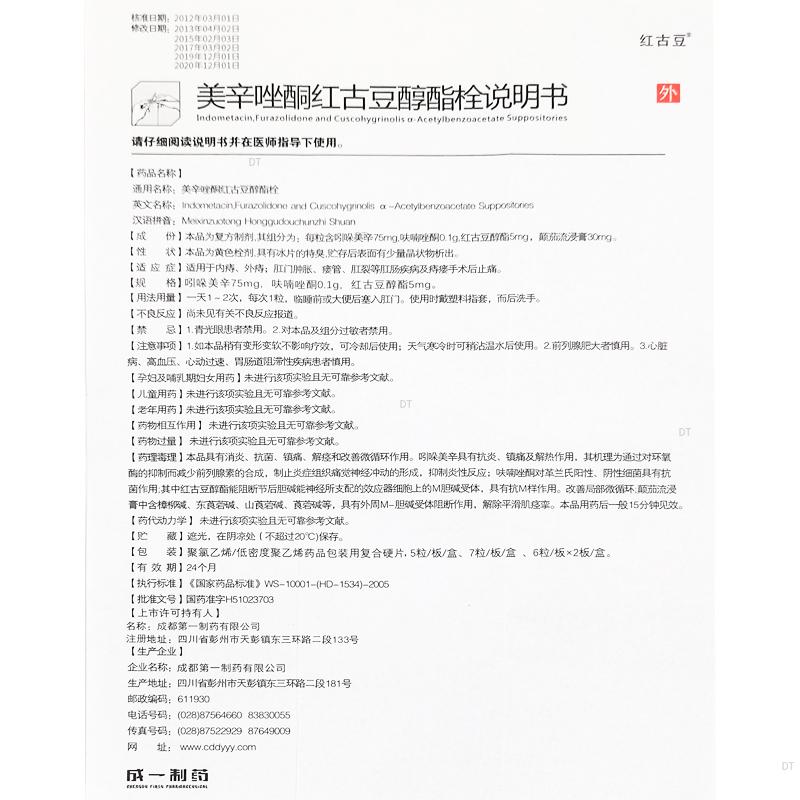 本品为复方制剂,其组份为:每粒含吲哚美辛75mg,呋喃唑酮0.1g,红古豆醇酯5mg,颠茄流浸膏30mg。