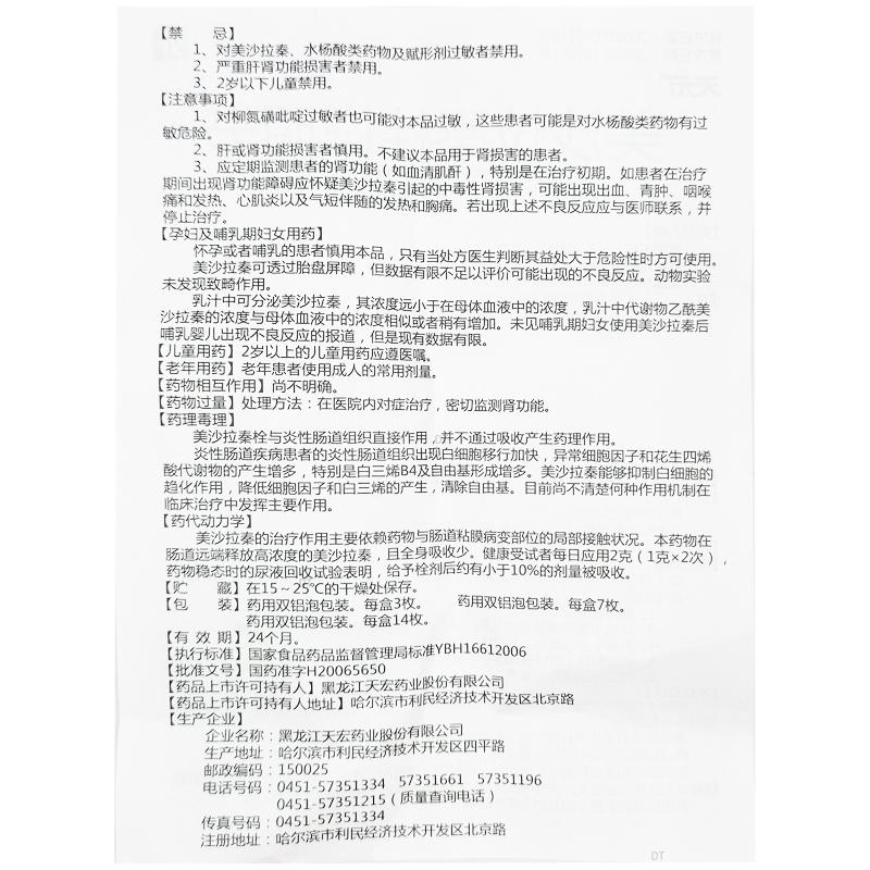警示语: 对美沙拉秦、水杨酸类药物及赋形剂过敏者禁用