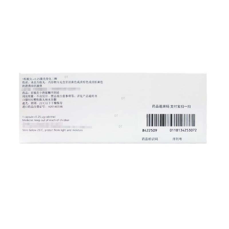 3. 甲状旁腺功能低下和佝偻病:推荐起始剂量为每日1粒(0.25μg),晨服。如生化指标和病情未见明显改善,则每隔2-4周增加剂量。在此期间,每周至少测定血钙浓度两次。甲状旁腺功能低下者,偶见吸收不佳现象,因此这种病人需要较大剂量。