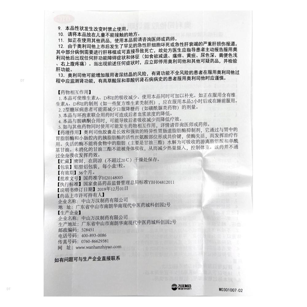 通用名称:奥利司他胶囊 (OTC)
