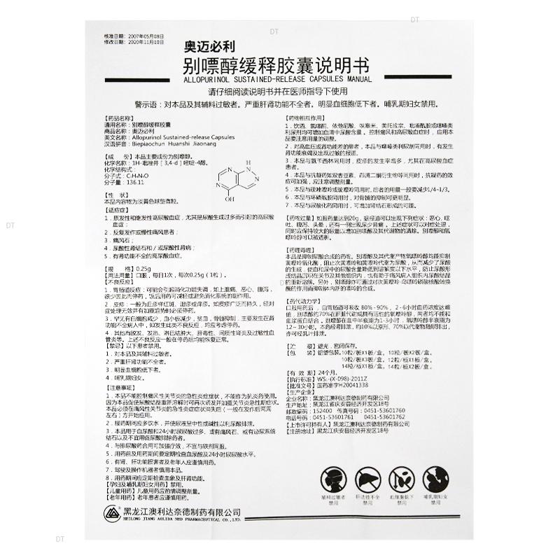 通用名称:别嘌醇缓释胶囊