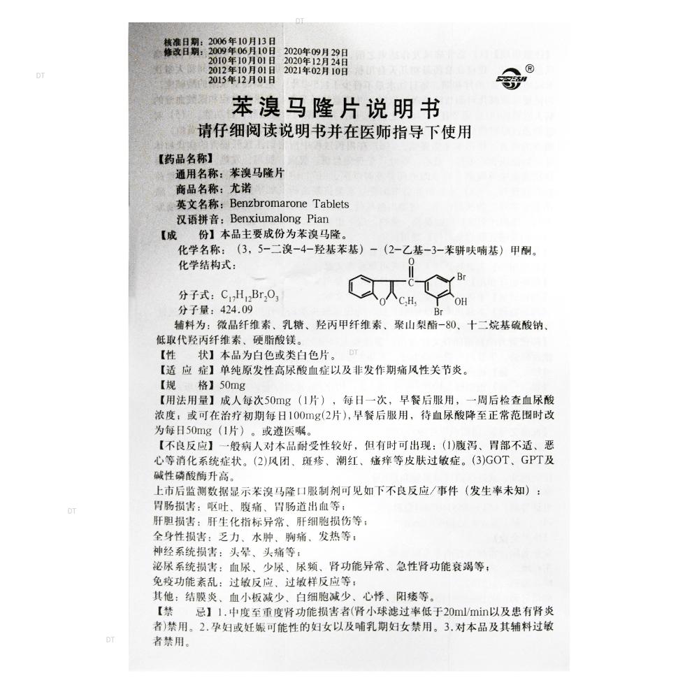 2.目前尚不清楚苯溴马隆是否会进入母乳之中,哺乳期患者禁用。