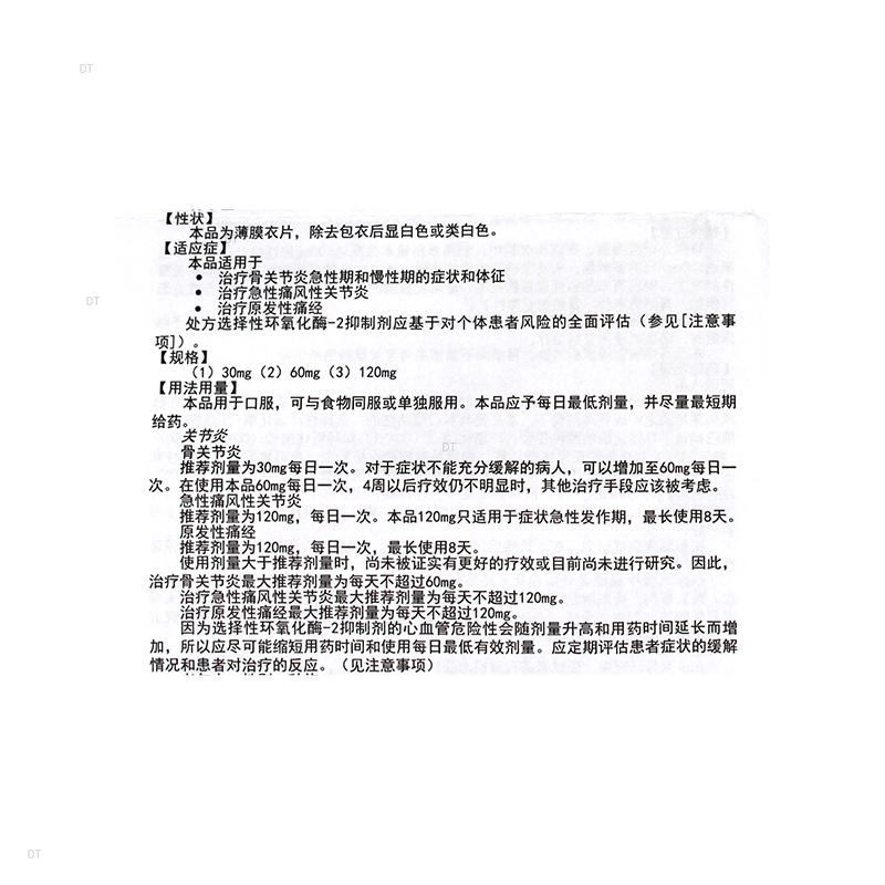 通用名称:*依托考昔片