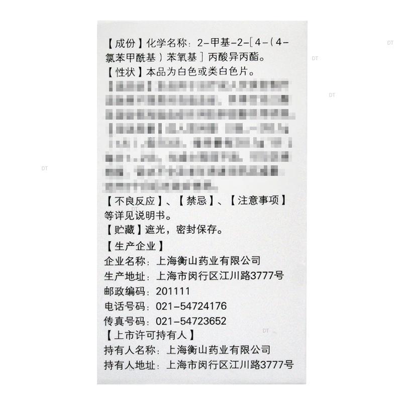 主要成分非诺贝特。