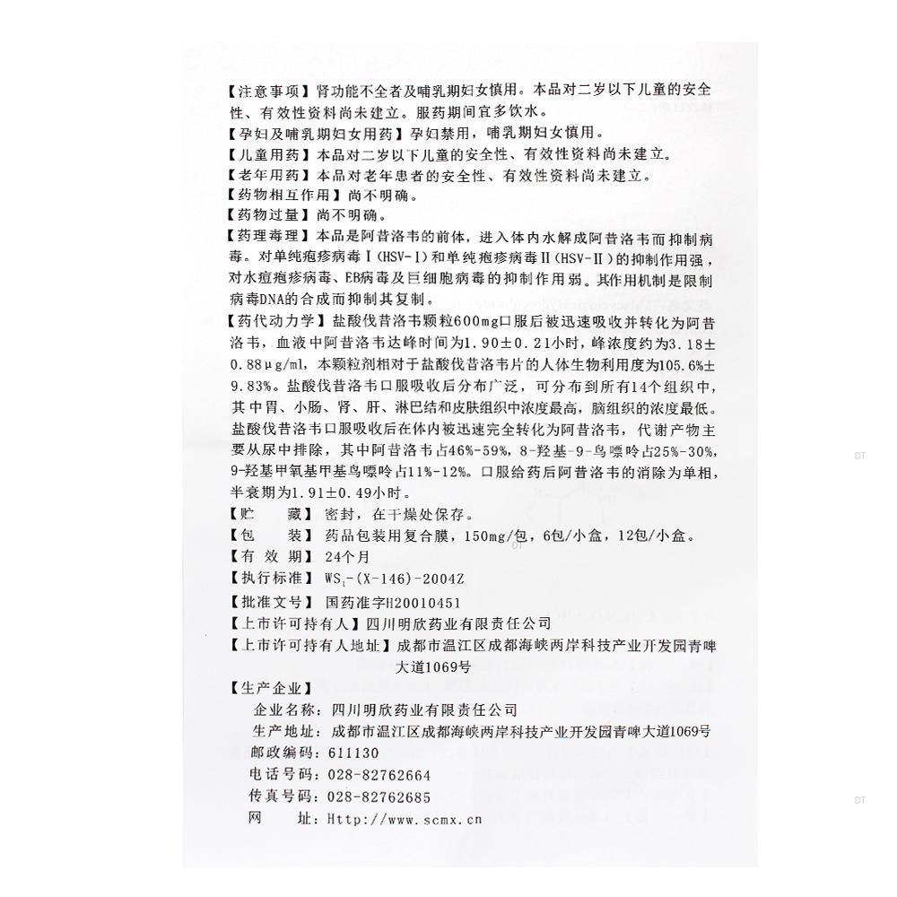 通用名称:盐酸伐昔洛韦颗粒