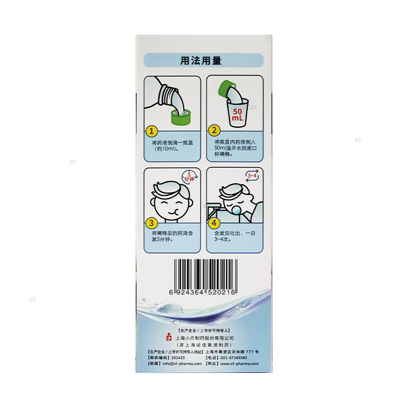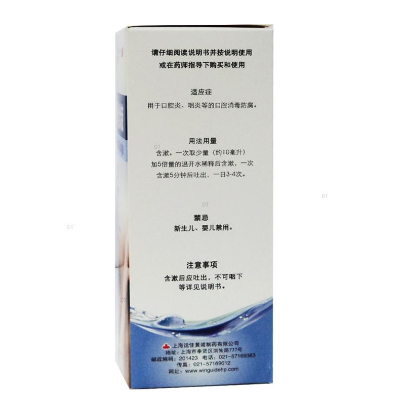 用于口腔炎,咽炎与扁桃体炎等的口腔消毒防腐。