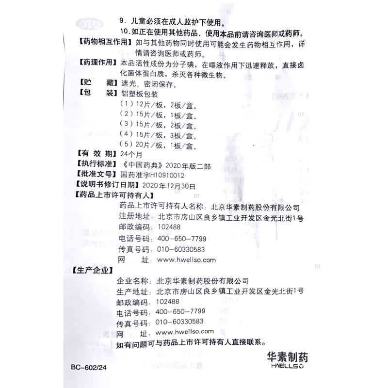 本品主要成份为分子碘,每片含分子碘1.5毫克