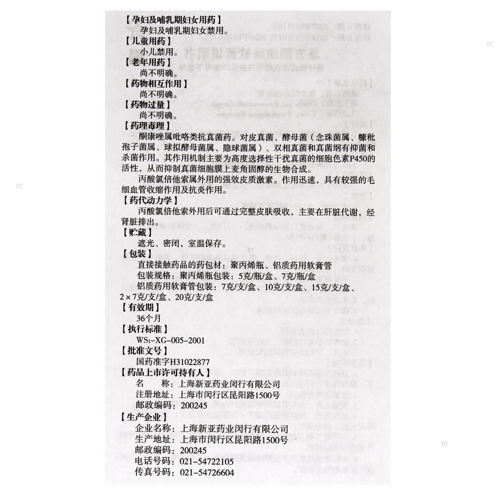 本品为复方制剂,每克含酮康唑10毫克和丙酸氯倍他索0.5毫克。辅料为:十六十八混合醇、石蜡油、平平加O、白凡士林、2,6-二叔丁基对甲酚、对羟基苯甲酸乙酯、对羟基苯甲酸丙酯、1,2-丙二醇、无水亚硫酸钠、纯化水及百雀羚香精。