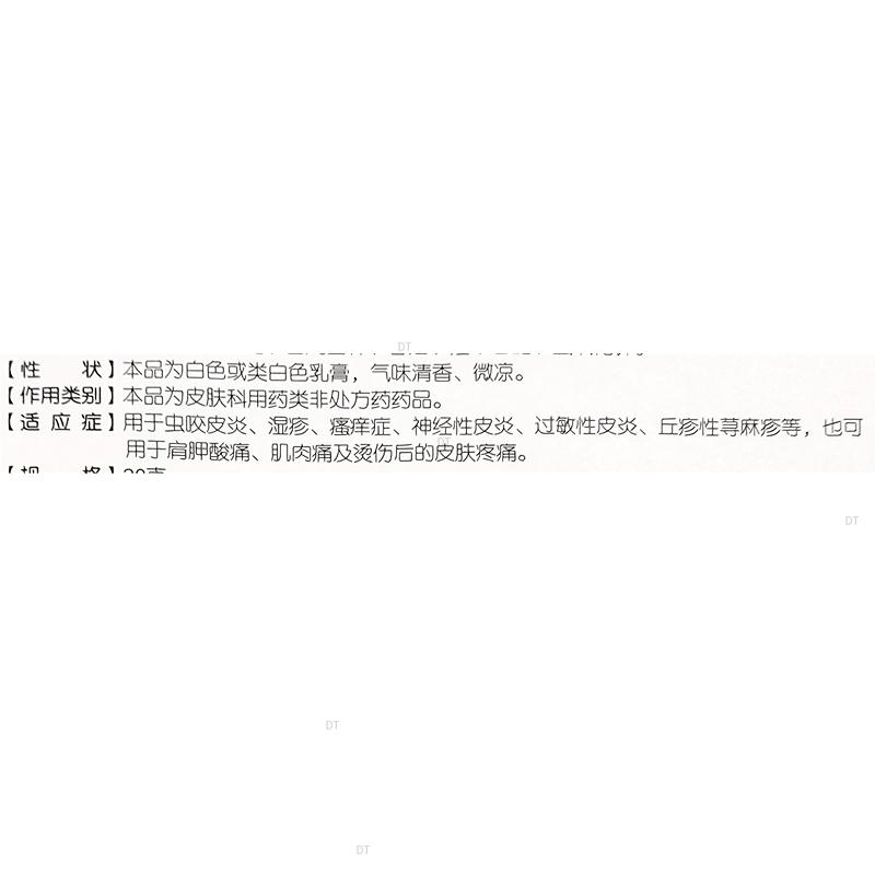 本品用于虫咬皮炎、湿疹、瘙痒症、神经性皮炎、过敏性皮炎、丘疹性荨麻疹等,也可用于肩胛酸痛、肌肉痛及烫伤后的皮肤疼痛。