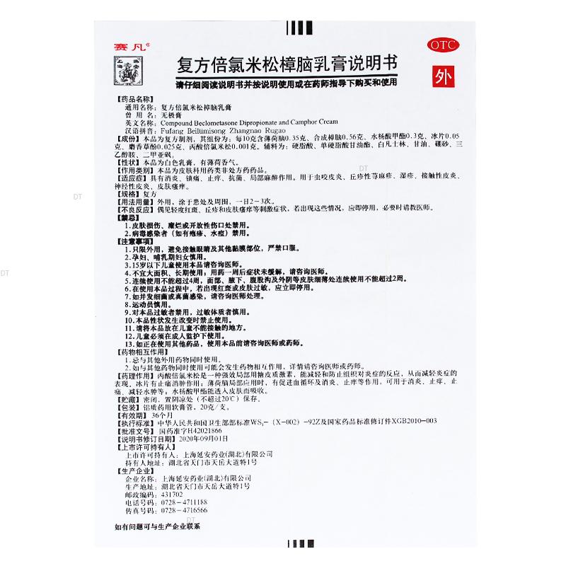 通用名称:复方倍氯米松樟脑乳膏(OTC)