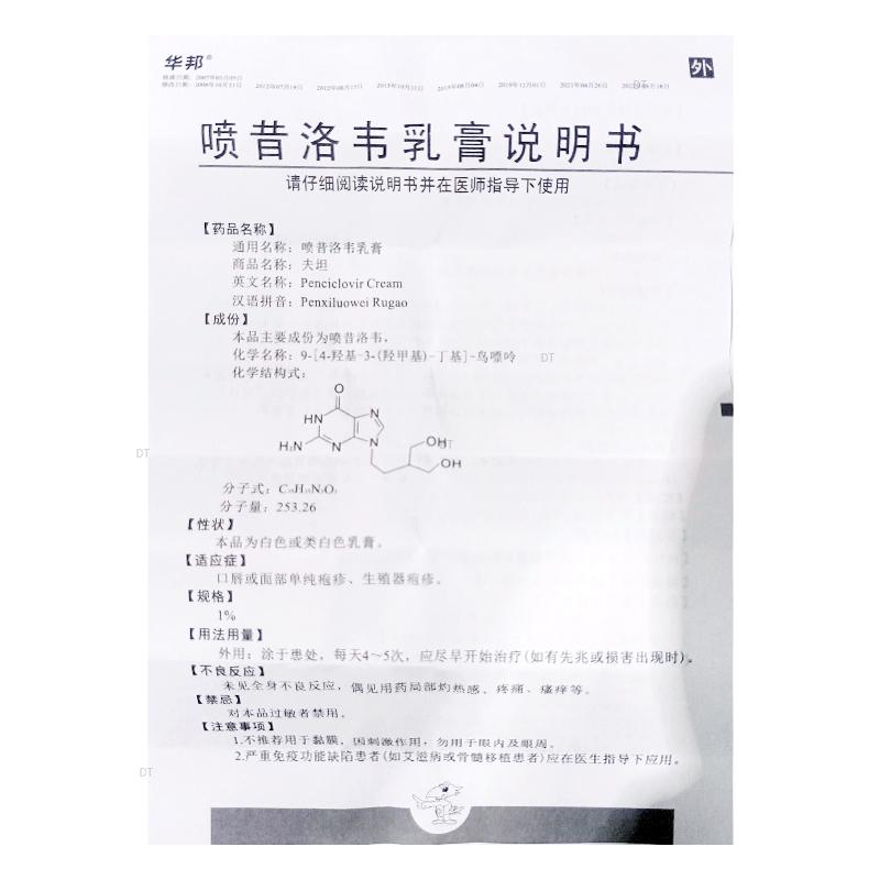 外用:涂于患处,每天4~5次,应尽早开始治疗(如有先兆或损害出现时)。