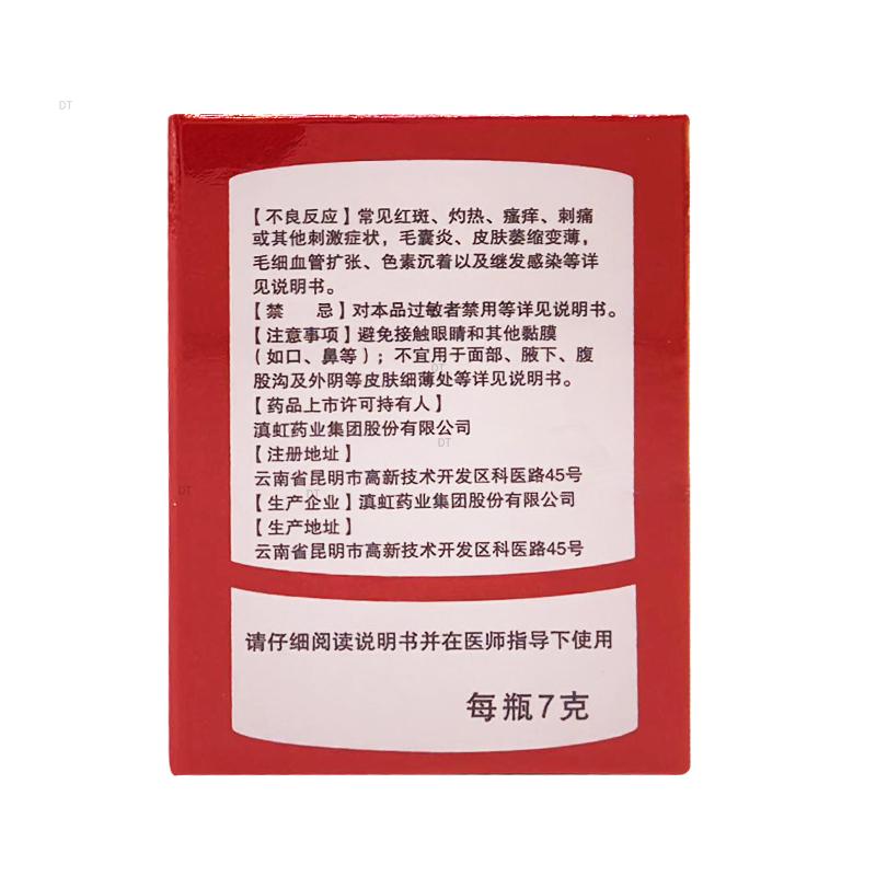 4. 连续使用不能超过4周,面部、腋下、腹股沟及外阴等皮肤细薄处连续使用不能超过2周,症状不缓解请咨询医师。