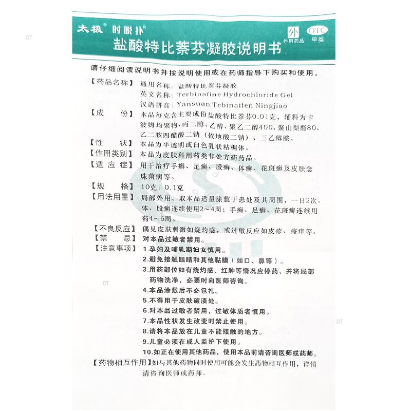 通用名称:盐酸特比萘芬凝胶(OTC)