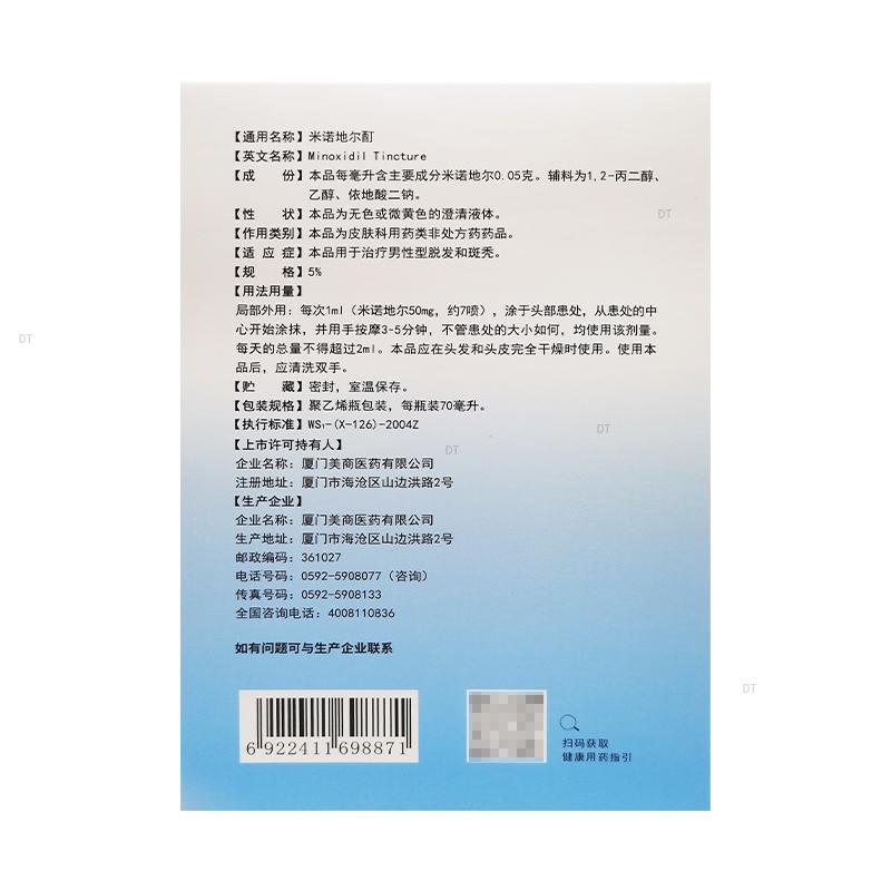 通用名称:米诺地尔酊(美匠师)(OTC)