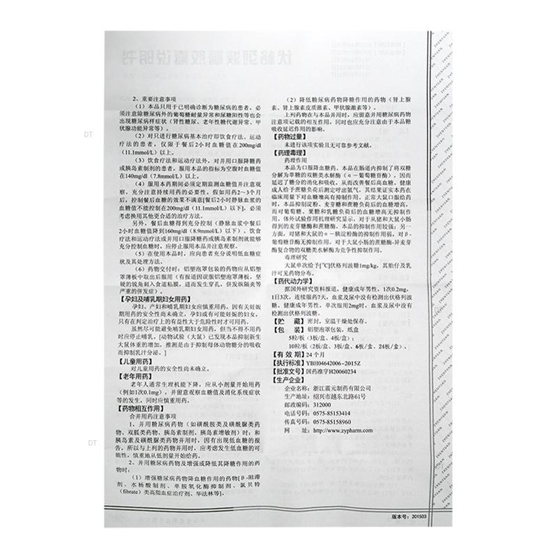 (4)服用本药期间必须定期监测血糖值并注意观察,充分注意持续用药的必要性。假如用药2~3个月后,控制餐后血糖的效果不满意[餐后2小时静脉血浆的血糖值不能控制在200mg/dl(11.1mmol/L)以下],必须考虑换用其他更合适的治疗方法。