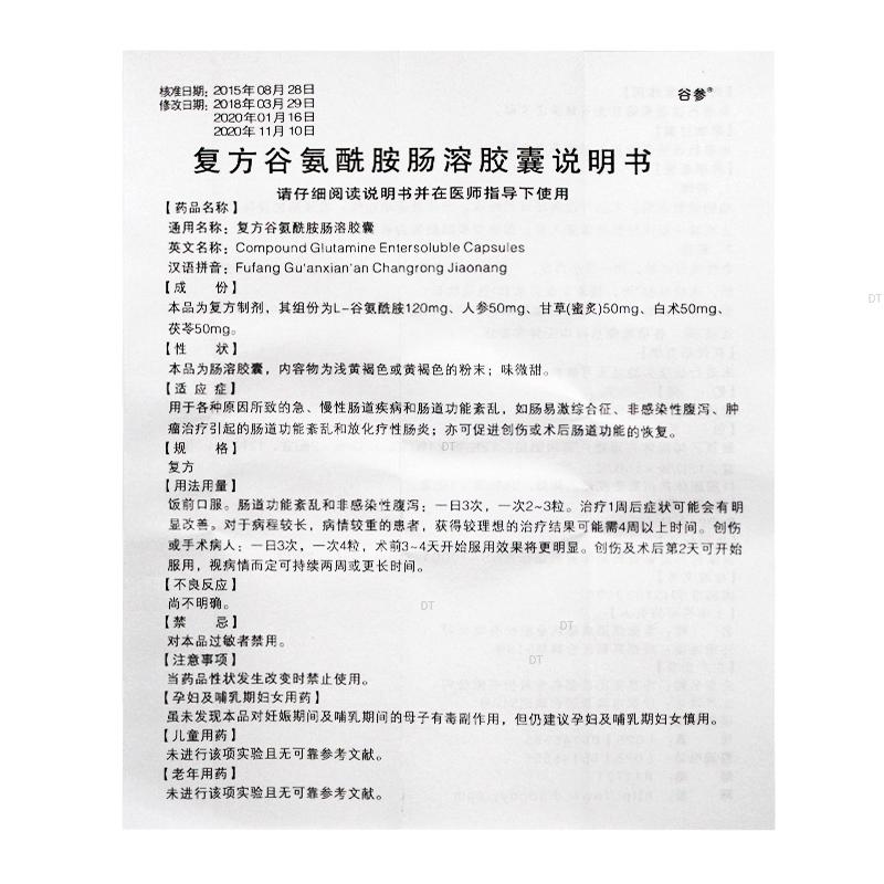 通用名称:复方谷氨酰胺肠溶胶囊