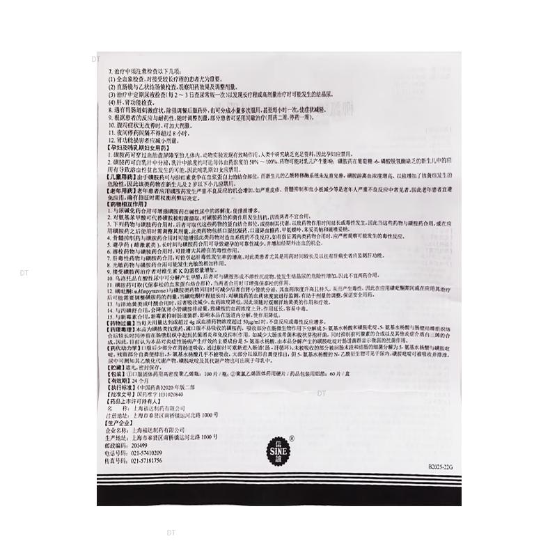 6.肾脏损害,可发生结晶尿、血尿和管型尿。偶有患者发生间质性肾炎或肾管坏死的严重不良反应。