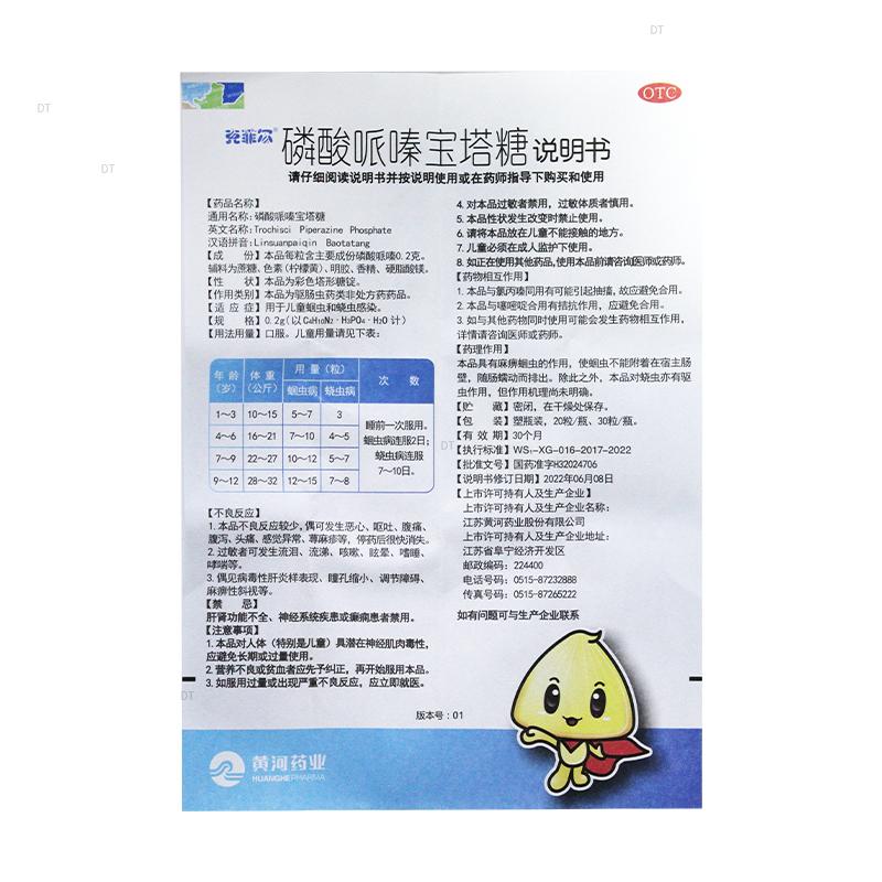通用名称:磷酸哌嗪宝塔糖(OTC)