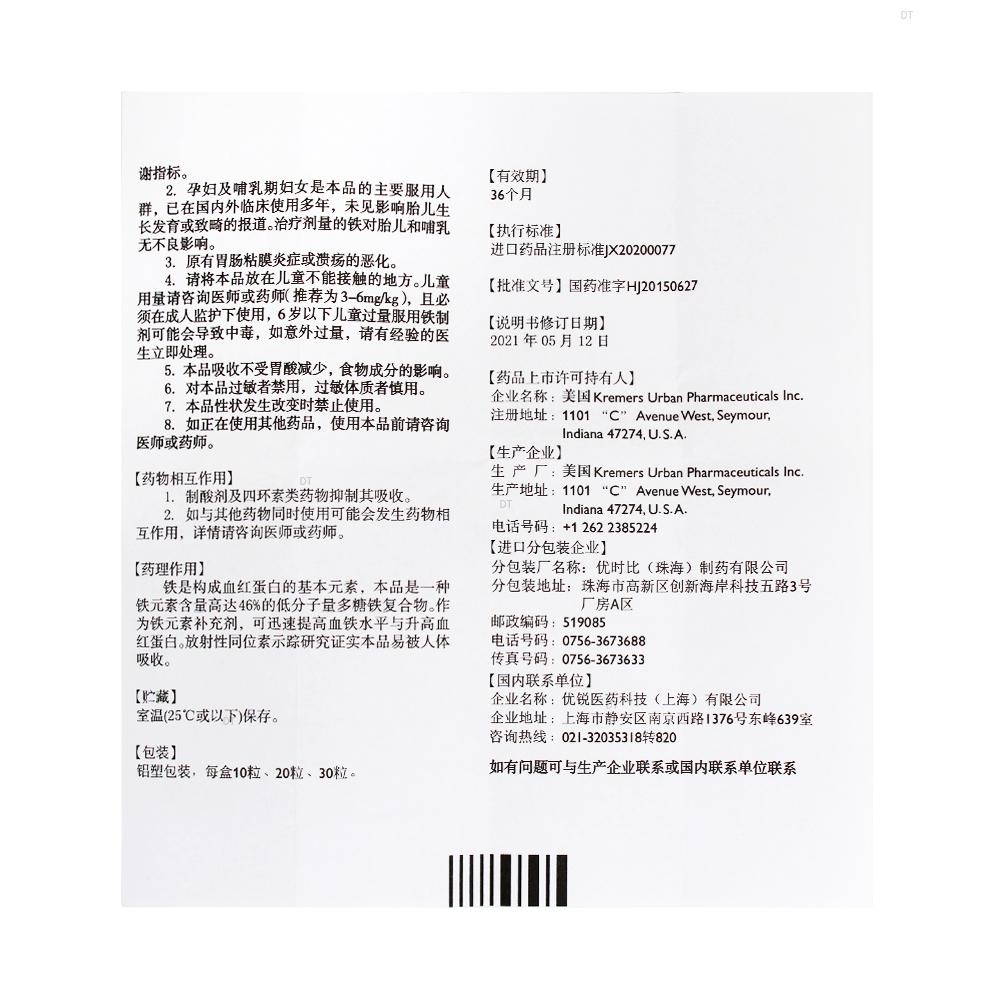 通用名称:多糖铁复合物胶囊(OTC)(HJ)