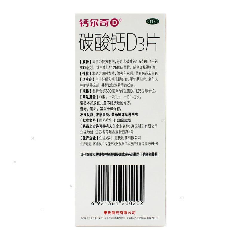 本品每片含主要成分碳酸钙1.5克(相当于钙600毫克),维生素D1.25毫克。