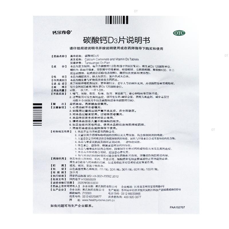 型号:60片/瓶(薄膜衣片)(含钙600毫克)