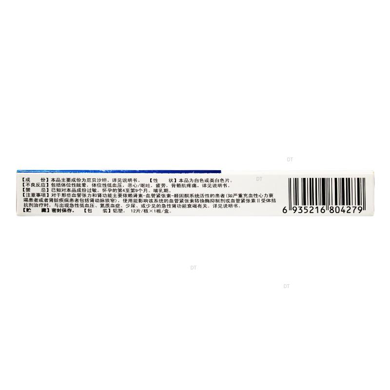 在接受本口治疗的患者中出现的不良反应总体上是轻度和暂时的。高血压患者:在使用本品的安慰剂对照治疗高直压患者的临床试验中,不良反应总的发生率在本品治疗组和安慰剂组中无差异。由于任何临床和实验异常事件而导致治疗中断的事件,治疗组少于安慰剂组。不良反应的发生率和剂量(在推荐剂量范围内)、性别、年龄、种族或治疗时间无关。
