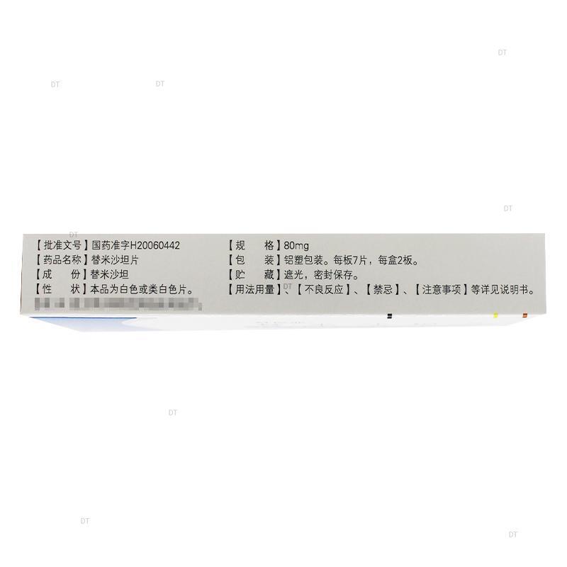 2、致突变毒性研究:替米沙坦在沙门菌和大肠杆菌回复突变试验(Ames)、中国仓鼠V79细胞基因突变试验以及人淋巴细胞遗传实验和小鼠微核实验均无遗传毒性。