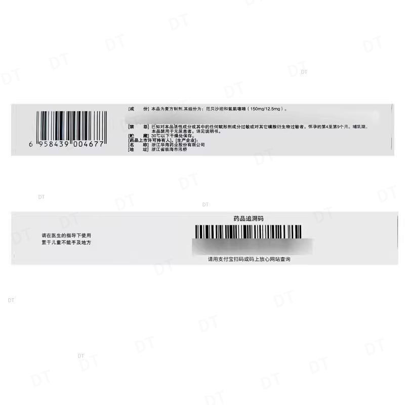 型号:(150mg:12.5mg)*14片*2板/盒(薄膜衣片)
