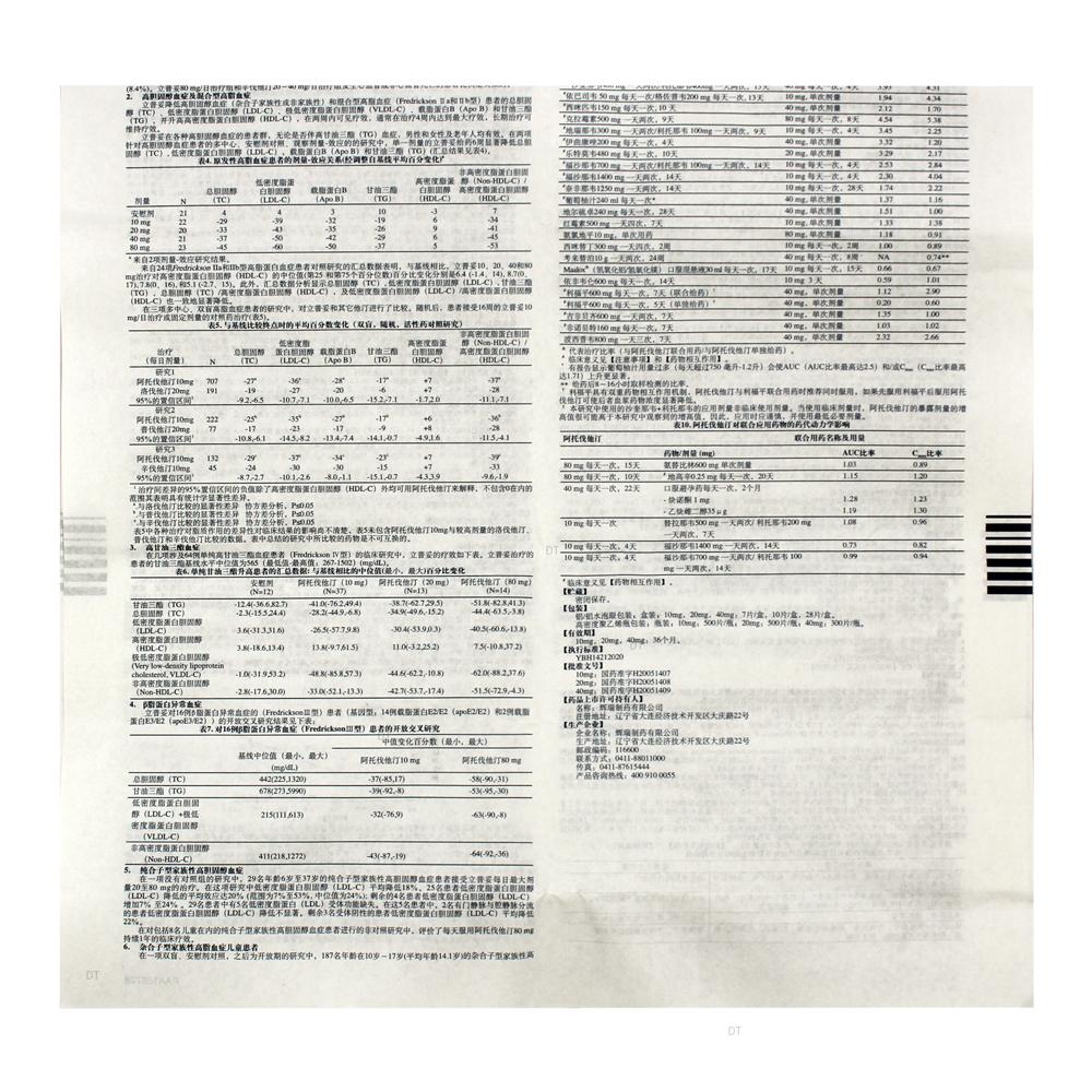 本品主要成分为阿托伐他汀钙。