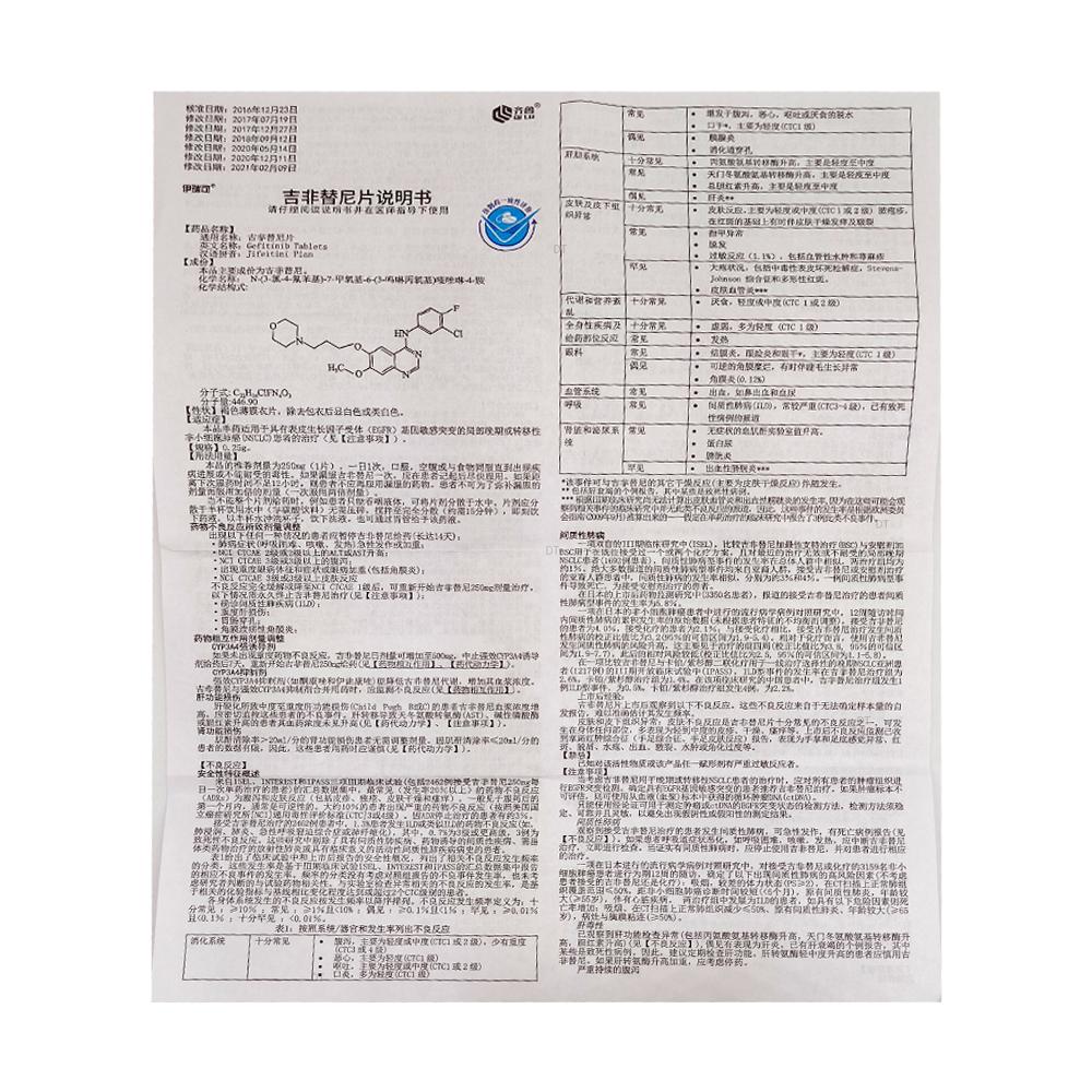 通用名称:*吉非替尼片