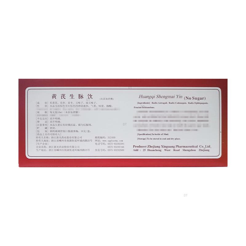 通用名称:黄芪生脉饮 (未添加蔗糖)