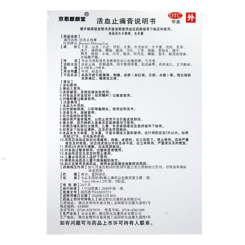 通用名称:活血止痛膏(OTC)
