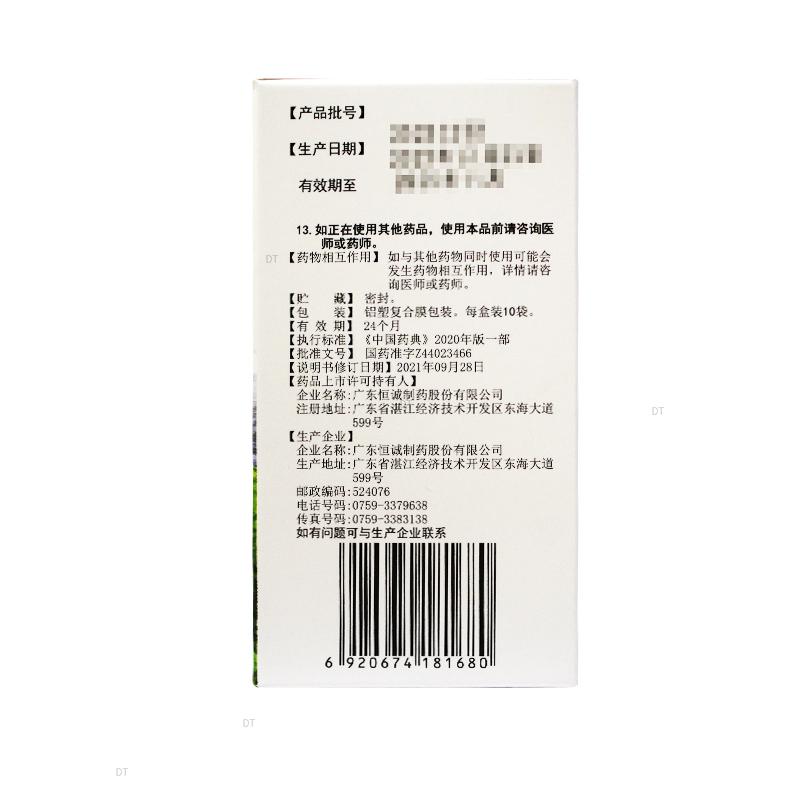 生产企业:广东恒诚制药股份有限公司/广东恒诚制药股份有限公司