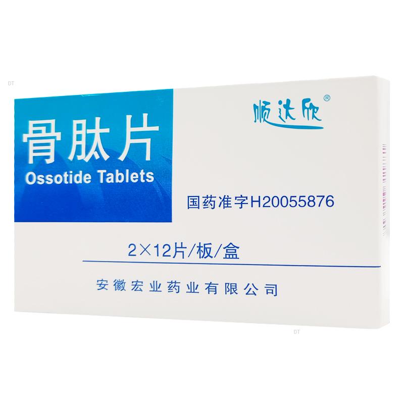 本品为健康猪或胎牛四肢骨提取物骨肽粉制成的片剂,每片含多肽类物质不低于40mg。
