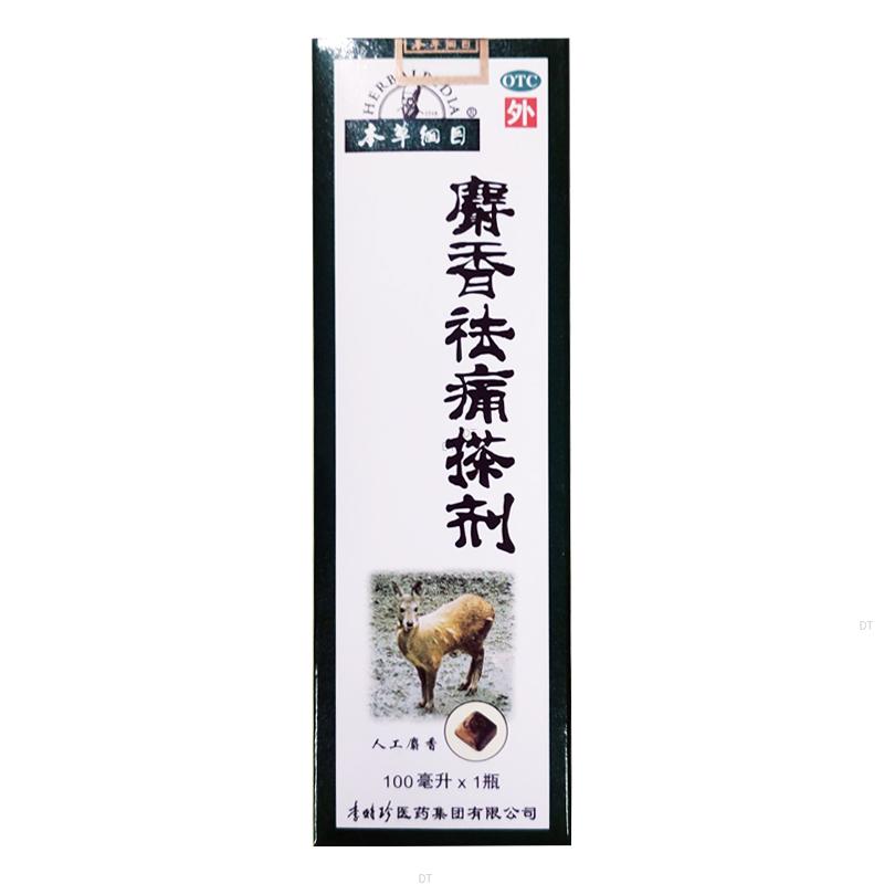 麝香、红花、樟脑、独活、冰片、龙血竭、薄荷脑、地黄、三七。辅料:乙醇。