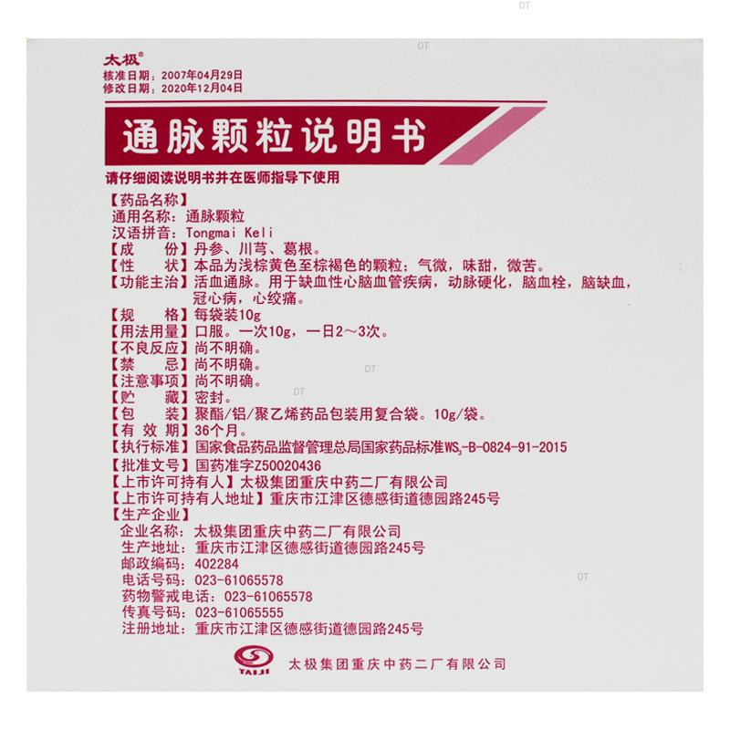 通用名称:通脉颗粒