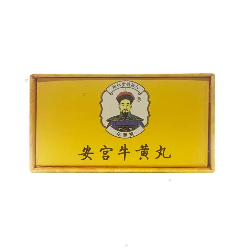 牛黄、郁金、犀角、黄芩、黄连、雄黄、栀子、朱砂各30克,冰片、麝香各7.5克,珍珠15克,金箔为衣。