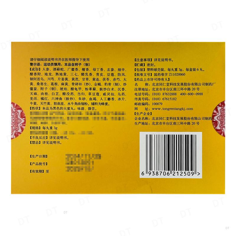 生产企业:北京同仁堂科技发展股份有限公司制药厂/北京同仁堂科技发展股份有限公司制药厂