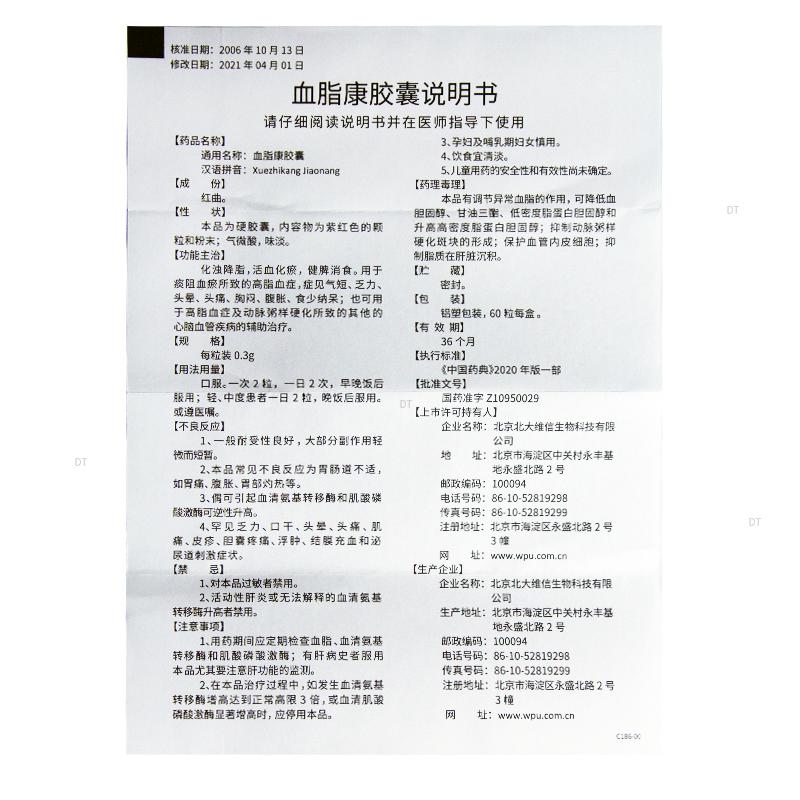 通用名称:血脂康胶囊