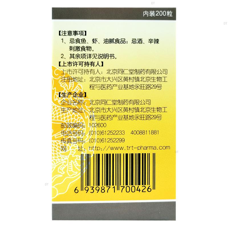 生产企业:北京同仁堂制药有限公司/北京同仁堂制药有限公司