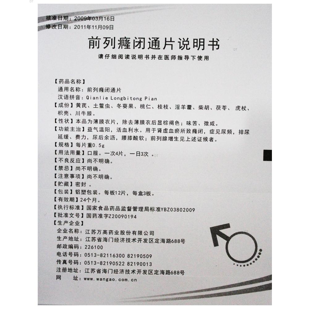 通用名称:前列癃闭通片
