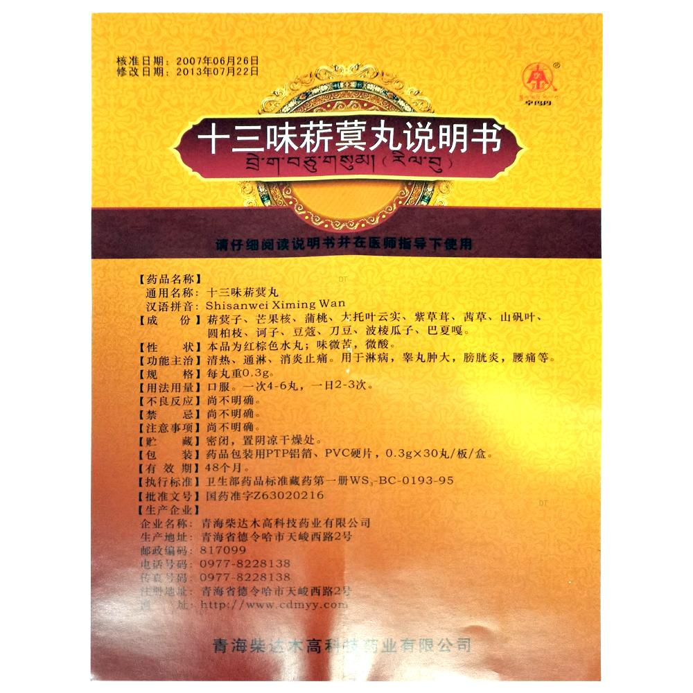 通用名称:十三味菥蓂丸
