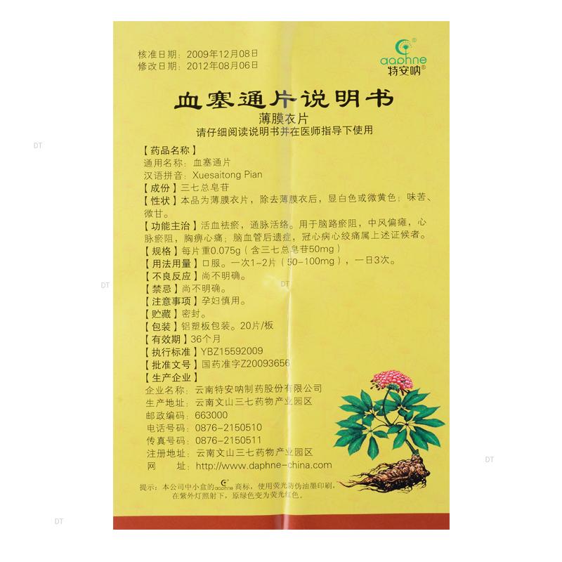 通用名称:血塞通片
