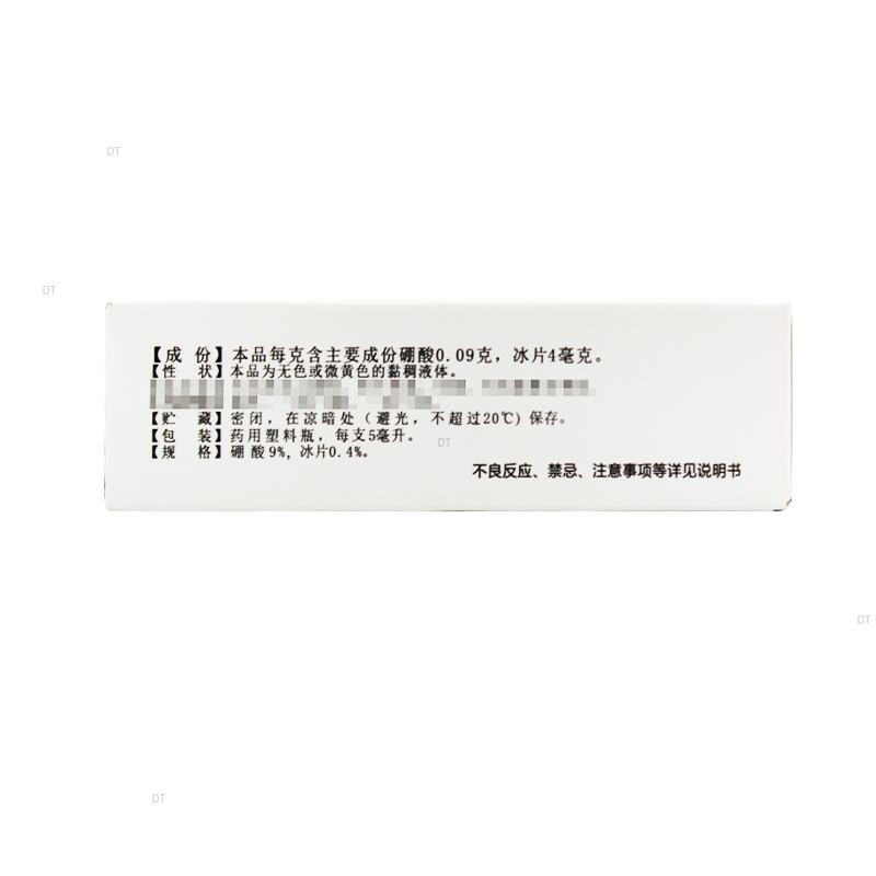 本品每克含主要成份硼酸0.09克,冰片4毫克。