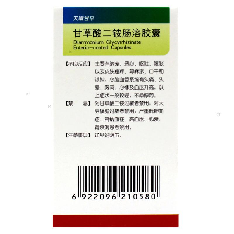 本品主要成份为甘草酸二铵,辅料主要为卵磷脂、淀粉。其化学名称为20β-羧基-11-氧代正齐墩果烷-12-烯-3β基-2-O-β-D-葡萄吡喃糖苷醛酸基-α-D-葡萄吡喃糖苷醛酸二铵盐。