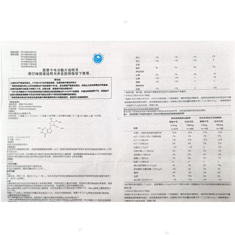 通用名称:恩替卡韦分散片
