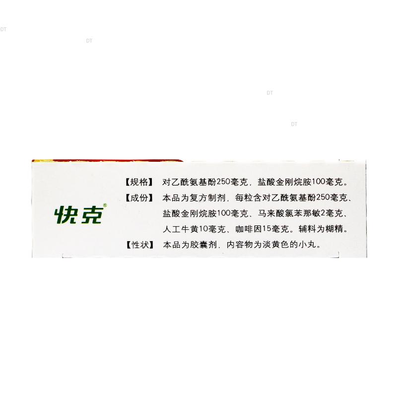 本品为复方制剂,每粒含对乙酰氨基酚250毫克,盐酸金刚烷胺100毫克,马来酸氯苯那敏2毫克,人工牛黄10毫克,咖啡因15毫克,辅料为糊精。