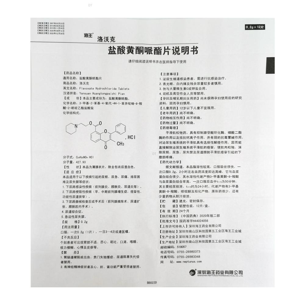 通用名称:盐酸黄酮哌酯片